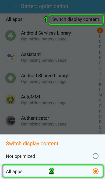 Open Battery Settings of Your Phone - Enter the Battery Optimization section and go to Switch Display Content.