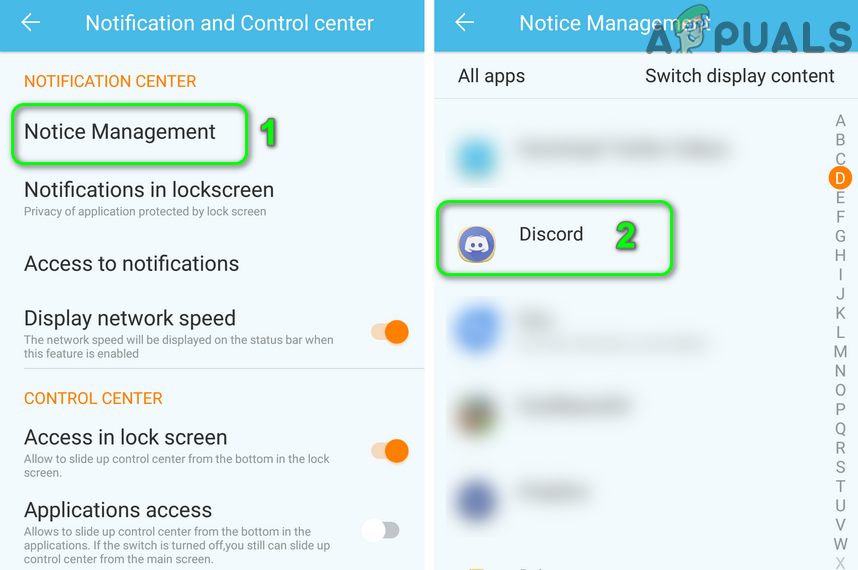Open Notifications and Control Center - Choose Notice Management and tap Discord.