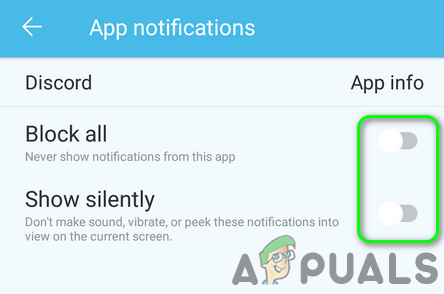 Open Discord Notification Settings - Disable the Block All and Show Silently options to enable notifications for Discord.