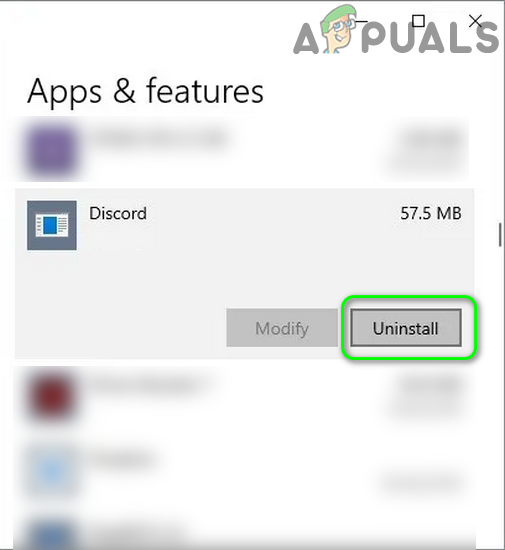 - Click on Uninstall and follow on-screen prompts to remove Discord.