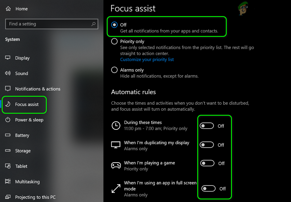 Disable Focus Assistant and its Automatic Rules - Reopen Discord and check for normal operation.