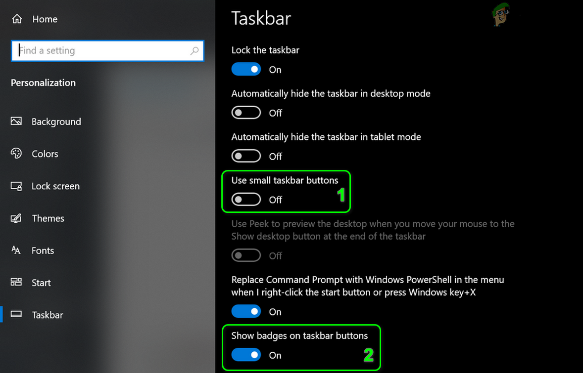 Disable Small Taskbar Buttons and Enable Show Badges on Taskbar Icons