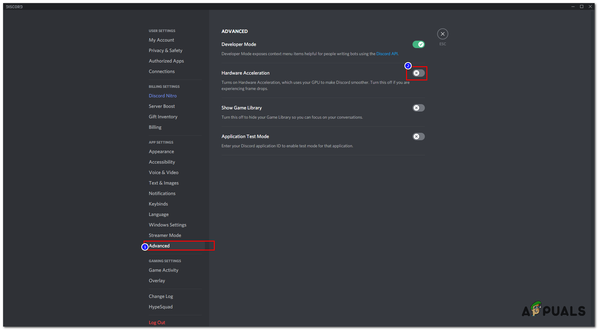 If your GPU is struggling with Discord’s video processing, turning off hardware acceleration can help. This setting uses the GPU for better performance but can cause issues with screen sharing, especially if your graphics drivers are outdated. Turning it off makes Discord use the CPU instead, which often fixes black screen problems.
