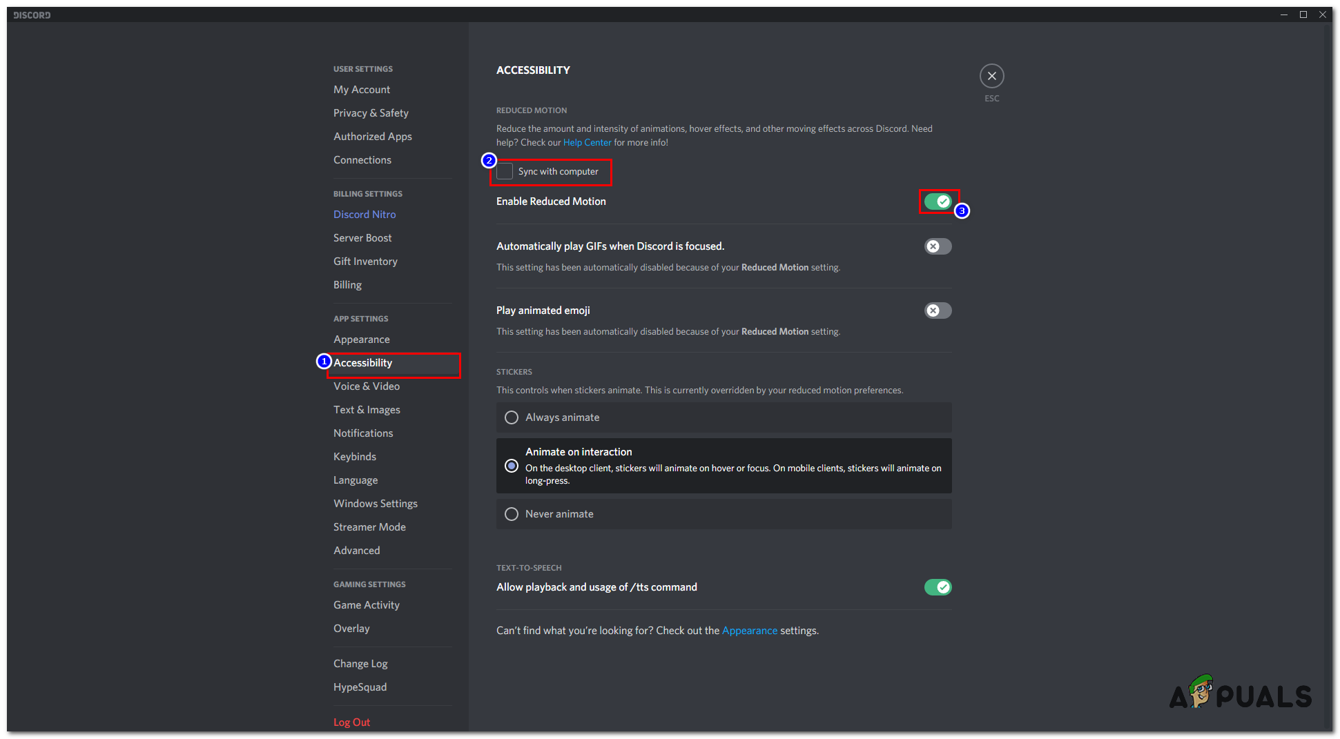 Simplifying Discord’s visuals by enabling “Reduced Motion” can help avoid black screen issues during screen sharing. This feature reduces animations, making Discord easier for your system to handle. By reducing the strain on your GPU, it helps prevent screen-sharing problems related to hardware limits or conflicts with the app’s graphics.