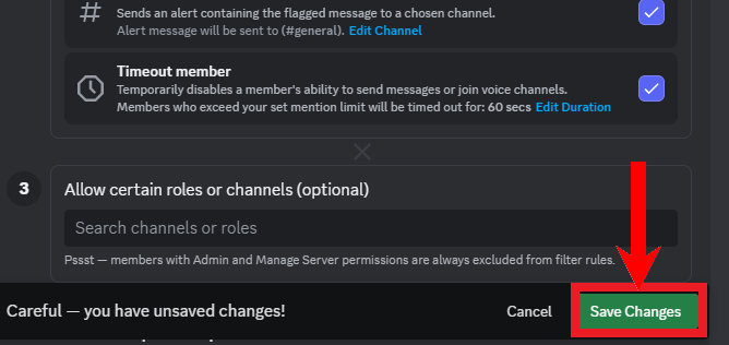 These settings are optimal - When finished, click Save Changes at the bottom. Your settings will be applied immediately. Be sure to configure all other moderation features as needed.
