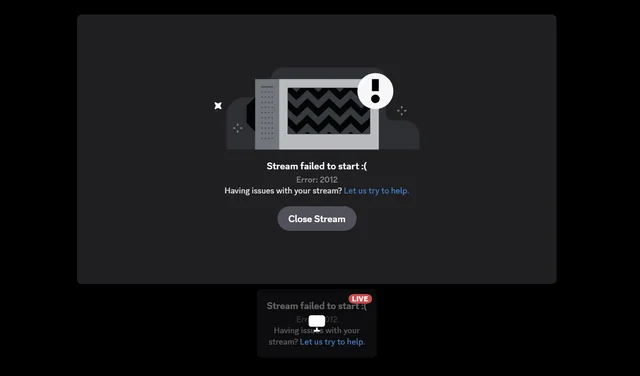When you try to use Discord’s camera or start a screen/game stream, the process may fail with the errors “Stream failed to start” or “Camera failed to start”, followed by one of the following codes: