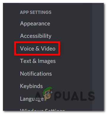 Accessing the Settings menu - Now inside the left-sided list, search for Voice & Video, then access it.