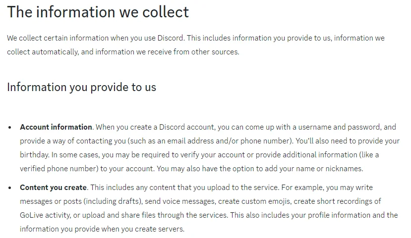 Who would’ve guessed? The document published by Discord has no mention, whatsoever regarding the lines highlighted above. This is concerning, especially because if Discord were not to record user activity, it would explicitly mention this. Since this is merely a guess, based on early documentation, we advise users not to make any judgments or verdicts.