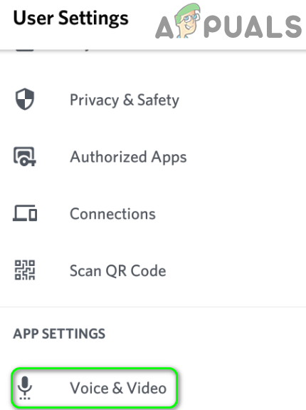 - Launch the Discord application and then open its Settings. Now tap on Voice and Video.