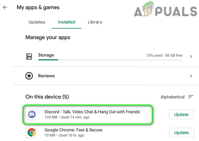 My Apps & Games – Play Store - Now navigate to the Installed tab and then tap on Discord.
