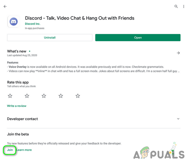 Discord is regularly updated to patch known bugs and add new features based on user suggestions. An outdated application may cause voice chat problems. In this context, updating the Discord application to the latest build/beta may solve the problem. For illustration, we will guide you through the update process on an Android phone.