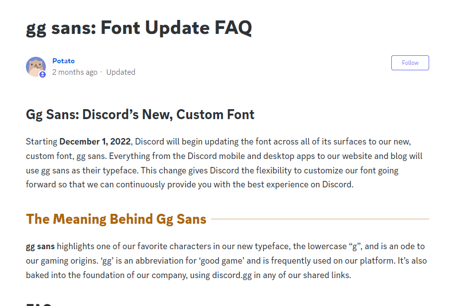 GG sans is actually a fan-made recreation of the previous Discord font. The name comes from the popular gaming phase, ‘gg‘, which means ‘good game‘. On top of that, Discord’s domain name also includes ‘gg’ (discord.gg) which gives meaning to their font style.
