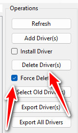 - Tick → enable Force Deletion → click Delete Driver(s).