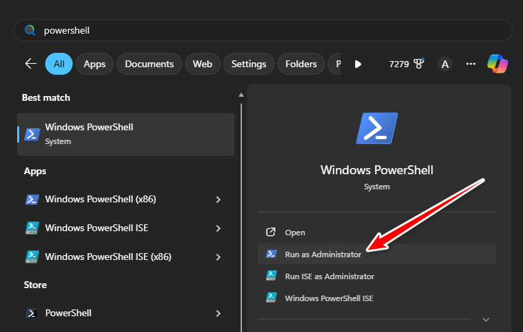 Proceed to Solution 4. - Open PowerShell as administrator.