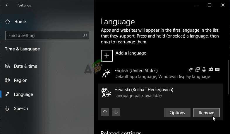 - Scroll down to the Preferred languages section and check the list of installed language packs. Left-click the one you want to remove and click the Remove Confirm any prompts which may appear.
