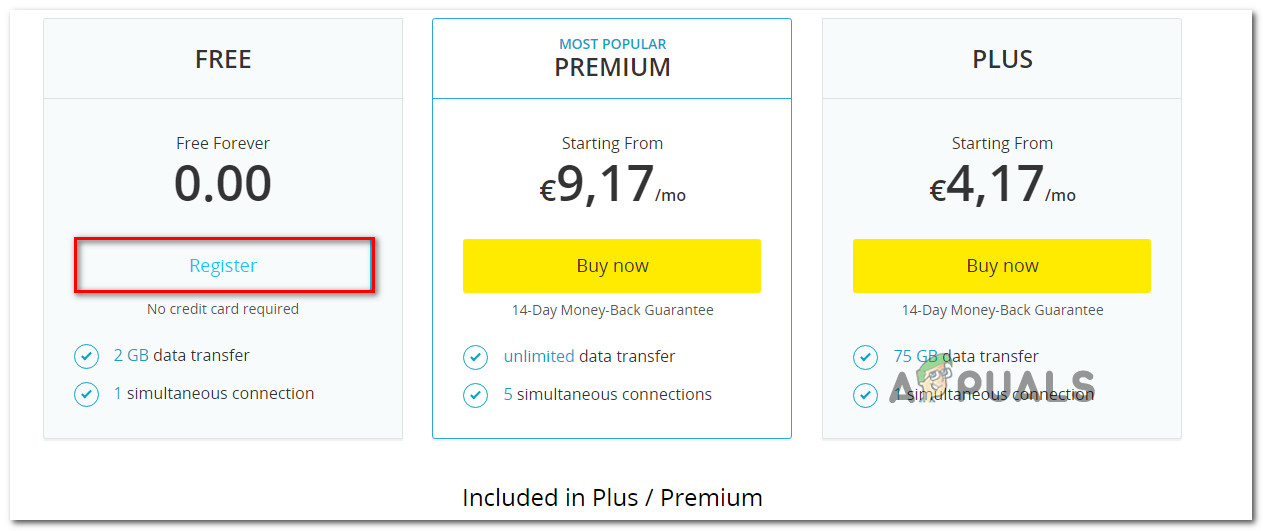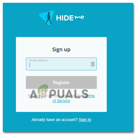 - At the next screen, click on the Register button once (the one associated with the free account), then download the free version of Hide.me for Windows PC.