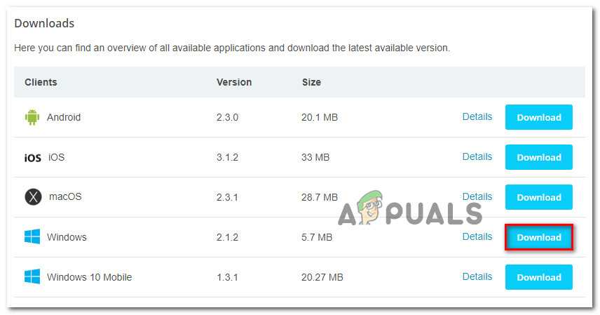 - Once you get this far, the free plan is successfully enabled. All that’s left to do now is to access the Download clients tab and click on the Download Now button corresponding with your operating system version in order to initiate the download.