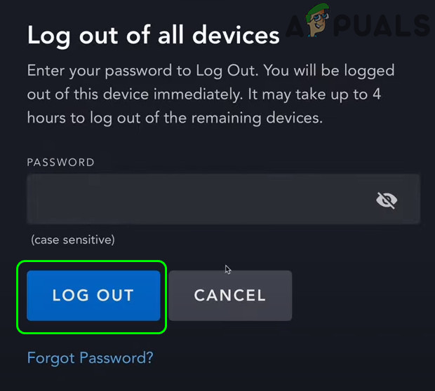 Confirm to Logout of All Devices in Sony Plus - Now launch the Disney app on the problematic device and check if the Disney Plus error code 1026 issue is resolved.