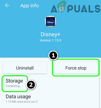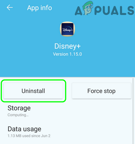 Clear Data and Cache of the Disney+ App - Now hit the back button and tap on the Uninstall button.