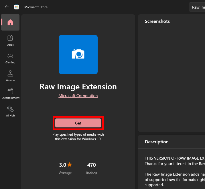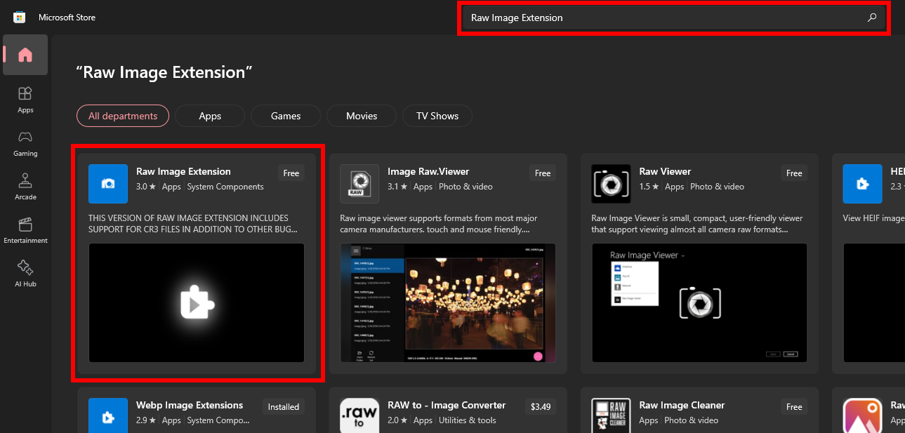 - Open the Microsoft Store, then use the search bar at the top and look for the Raw Image Extension.