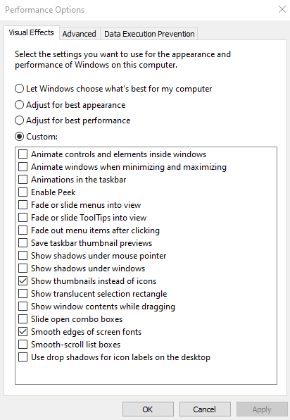 A common procedure after a fresh installation of Windows is tweaking the settings for maximized performance, which can sometimes include disabling the display of thumbnails.