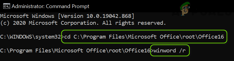 Find the Installation Directory of the MS Word - Then launch an elevated Command Prompt (step 1) and execute the following to steer to the installation directory of MS Word.