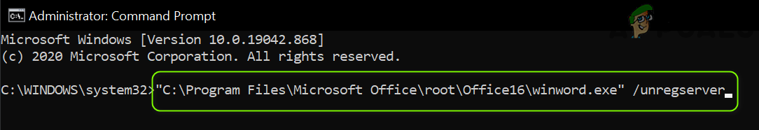 Unregister Winword - Once the execution is complete, execute the following in the Command Prompt window: