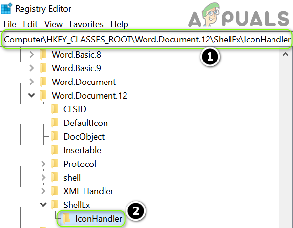 Delete the IconHandler Key - Upon reboot, set the Word as the default application for .docx files (as discussed in solution 2) and check if the word icons issue is resolved.