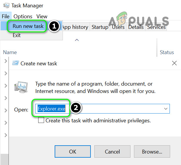 Run a New Task of Explorer.exe in the Task Manager - Now check if the Word icon issue is resolved. If not, reboot your system and check if the icons are restored.