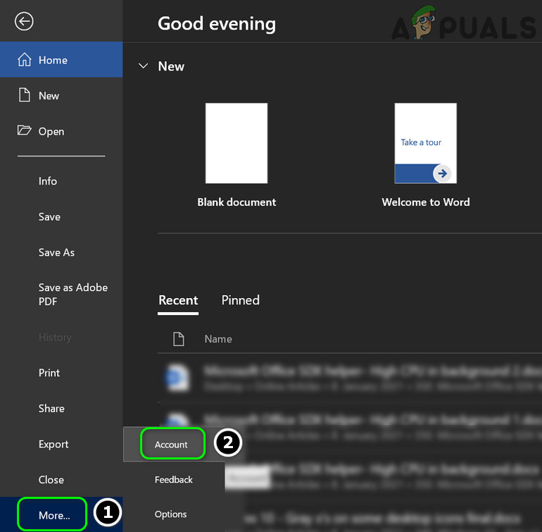 - If not, launch an Office application (e.g., MS Word) & steer to its File menu.