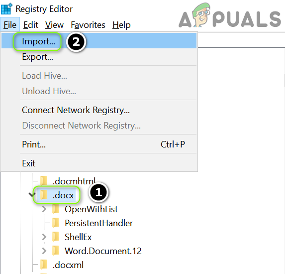 Delete the .Docx Registry Key - Now reboot your PC and reinstall the Office suite to check if the icons issue is resolved.