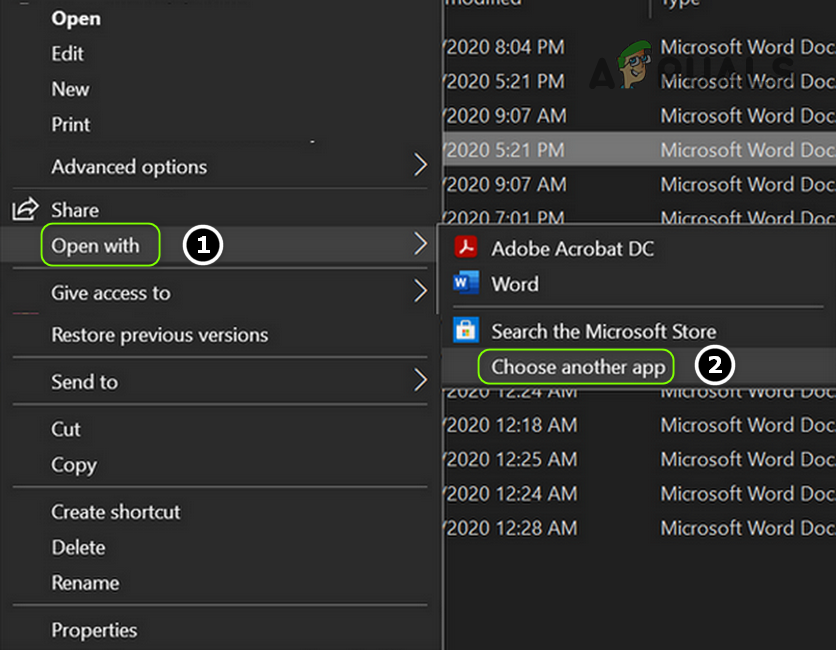 - Right-click on an MS Word file & select Open With > Choose Another App.