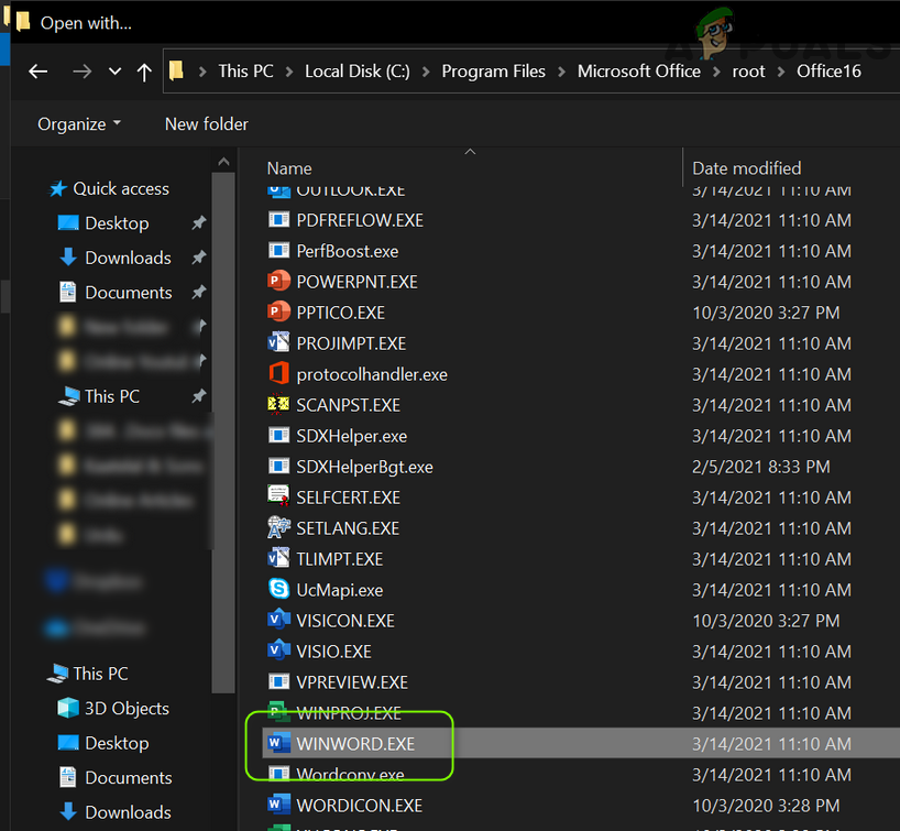 - Then double-click on WINWORD.exe (make sure to checkmark the Always Use This option) and check if the icons’ issue is resolved.