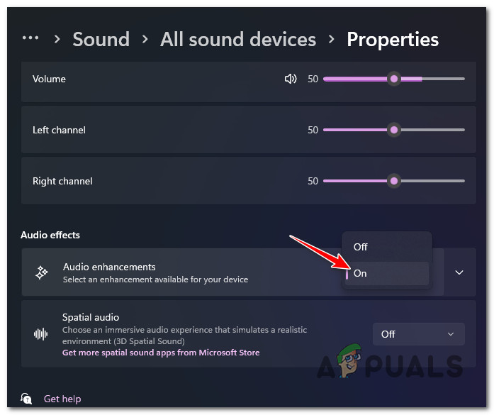 If you are using any audio enhancement software to enhance the audio quality of your device, then it is recommended to disable them as they are causing issues for many users. You can uninstall any third-party audio enhancement software, and if you are using Windows audio enhancement features, follow the steps mentioned given to disable them: