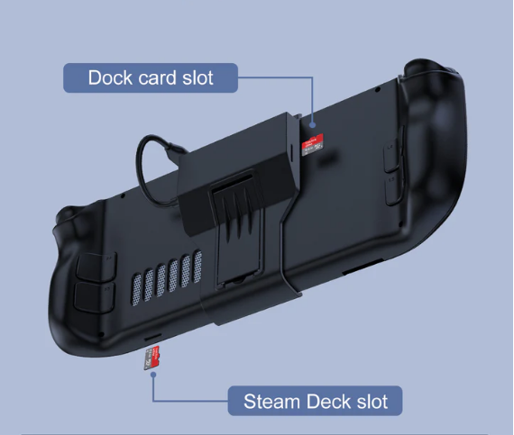 NewQ‘s affordable 5-in-1 Clip-On Dock is easy to use and portable. It features 2 USB 3.0 ports, a HDMI port, a USB-C charging port, and a MicroSD card slot, which can be a huge benefit if your Deck has limited storage built-in.