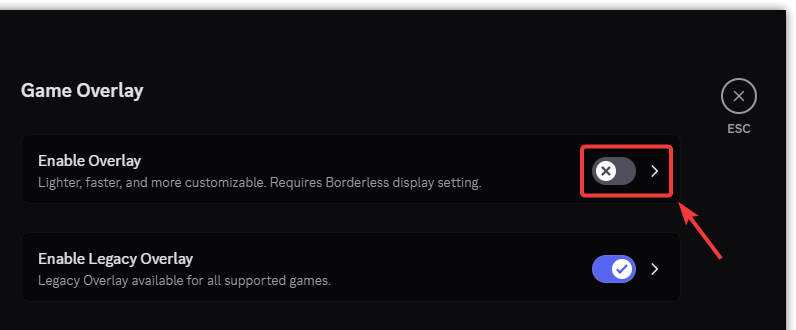 - Toggle off Enable in-game overlay.