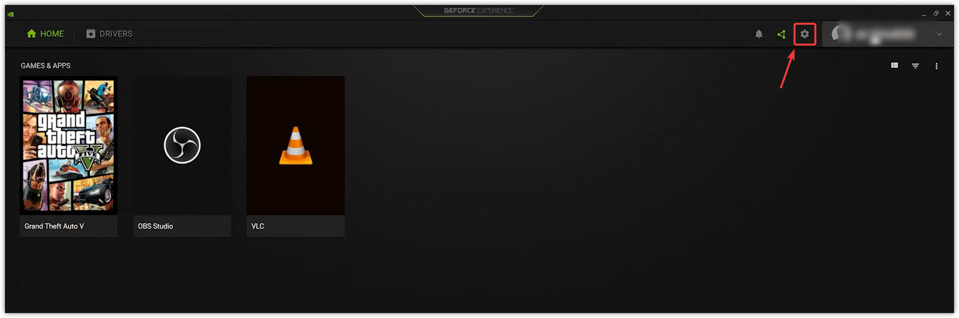 - Open GeForce Experience and click on the gear icon (Settings) in the top right.