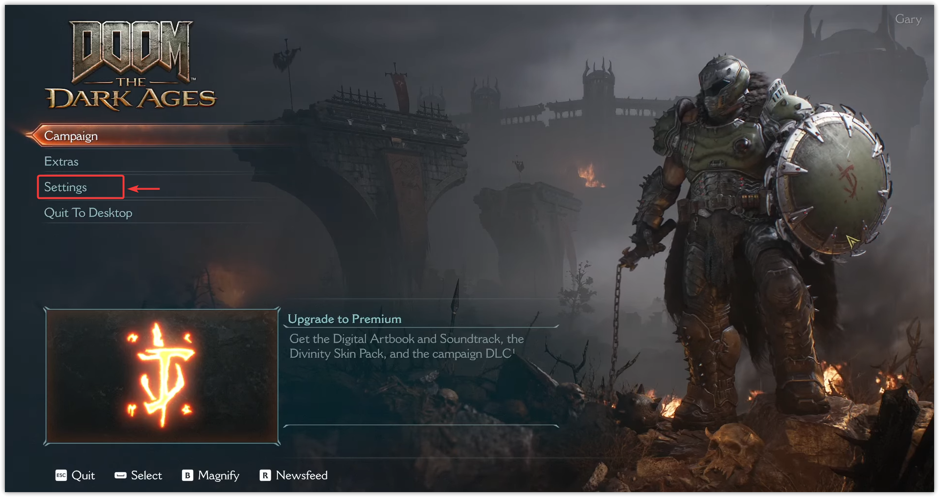 - Launch DOOM: The Dark Ages and go to Settings.