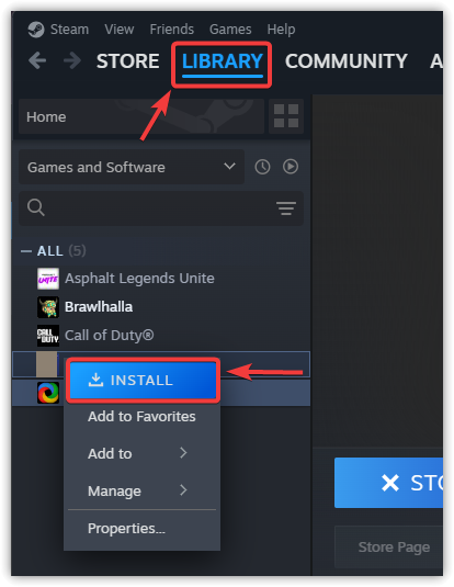 - Open Steam again, go to your Library, and click Install.