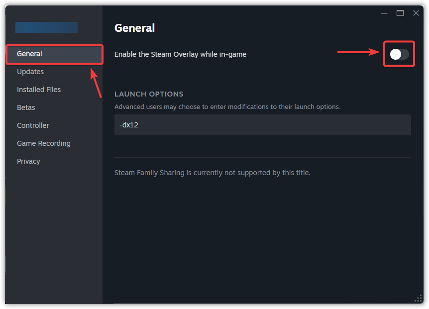 - Under the General tab, toggle off In-Game Overlay.