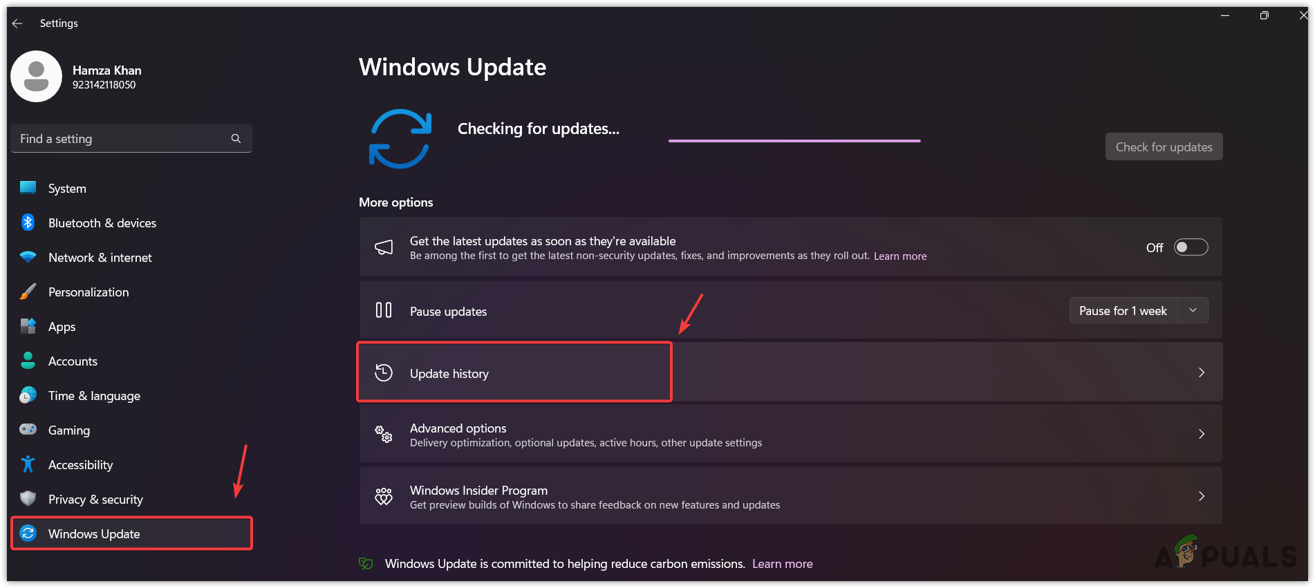 - From here, navigate to the Update History, then scroll down to the bottom and navigate to the Uninstall Updates.