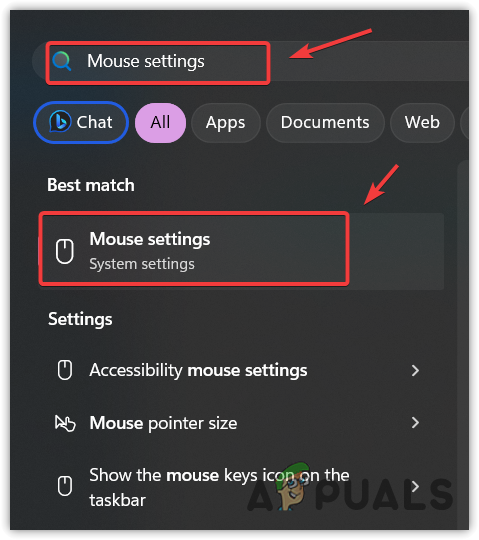 - Click the Start Menu and type Mouse Settings.