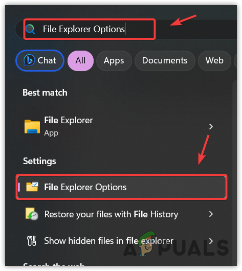 - Here search for File Explorer Options.
