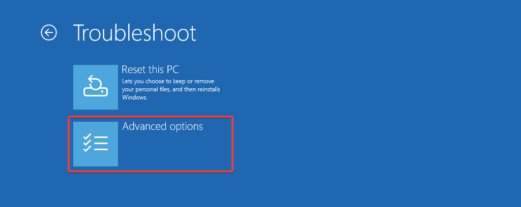 - Within the Troubleshoot menu, choose Advanced options.