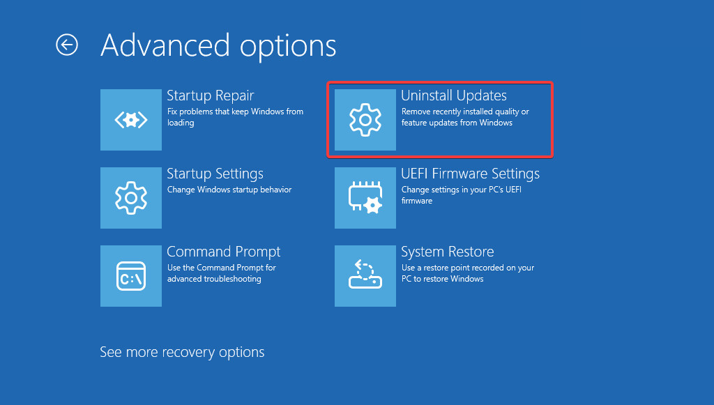 - From the Advanced options menu, select Uninstall Updates to proceed.