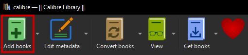 - Once done, open Calibre and select the Add books option.