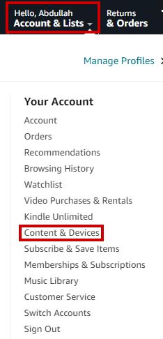 - Click on Accounts & List and select Content and Devices from the drop-down menu.