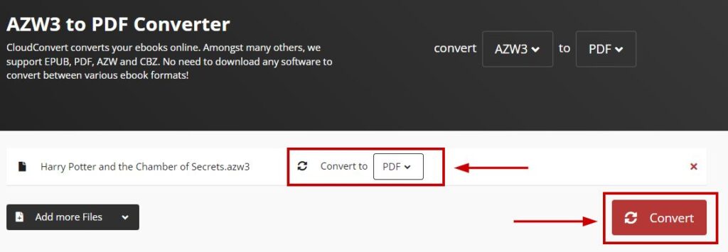 Zamzar can convert multiple documents, e-books, images, videos, and sounds at once. Moreover, it supports more than 1100 formats. So, converting from .azw or .mobi to pdf won’t be an issue.