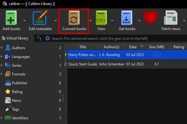- Now select the Convert books option.