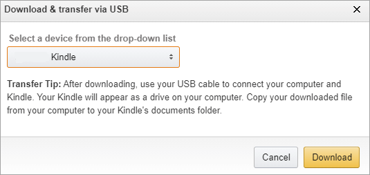 - Select your Kindle device in the next window.
